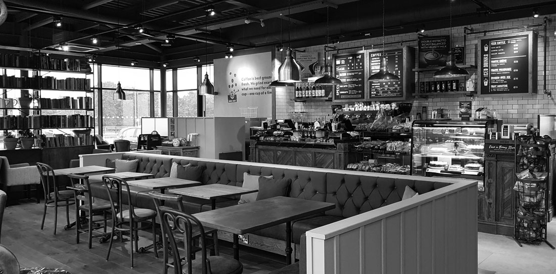 Shopping centres, old and new, and stand-alone units at retail parks pose their own design challenges in terms of visual standout and creating an engaging customer experience. The Caffè Nero brand is warm, cosy and sensory, the trick is to marry this seamlessly with the high-gloss environment of shopping centres and the hangar-like architecture of retail parks. Shopping centres, frequently have their own design guidelines and brand vision that your concept needs to fit in with, they demand greater creativity and points of difference to enhance their own customer appeal, especially so in the Middle East