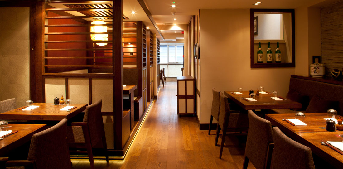 Chisou is an authentic Japanese sushi restaurant and sake bar in Mayfair whose owner wished to develop a new concept for a second site in Knightsbridge. A mix of dining experiences was required across three floors in a Georgian terrace house; a sophisticated and intimate dining area on the ground floor, casual dining and a saki bar on the first floor, and a ‘chef’s table’ in the basement where diners can enjoy the theatre of their food being freshly prepared in front of them. The storefront window is used for ‘see-and-be-seen’ dining and private booths, known as ‘the Japanese houses’, were created further back. Traditional dark woods, diffused light and slatted screens are used throughout to unify the scheme.
